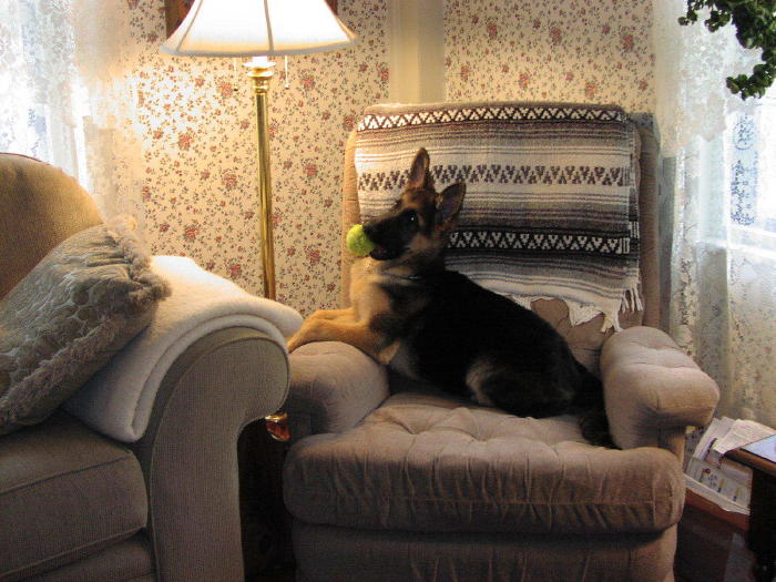 On the left Brinka as very young pup on her favorite chair |